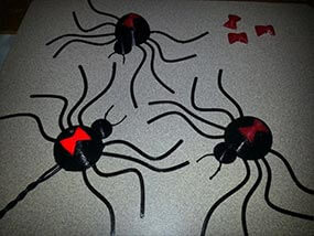 在万圣节聚会上,你一定会看见到处都是假蜘蛛。此处不再讨论任何可能有关蜘蛛的神秘特异功能,重要的是蜘蛛要结网,这向来与时间、进步和命运的消逝相关。 总之,蜘蛛织网是自然界象征生命循环极好的例子——蜘蛛织网,虫子投网,蜘蛛进食,等等。此外,蜘蛛喜欢灰尘多、阴暗的地方,在废弃的房屋(万圣节备受喜爱的去处), 你一定能找到很多蜘蛛和蛛网。